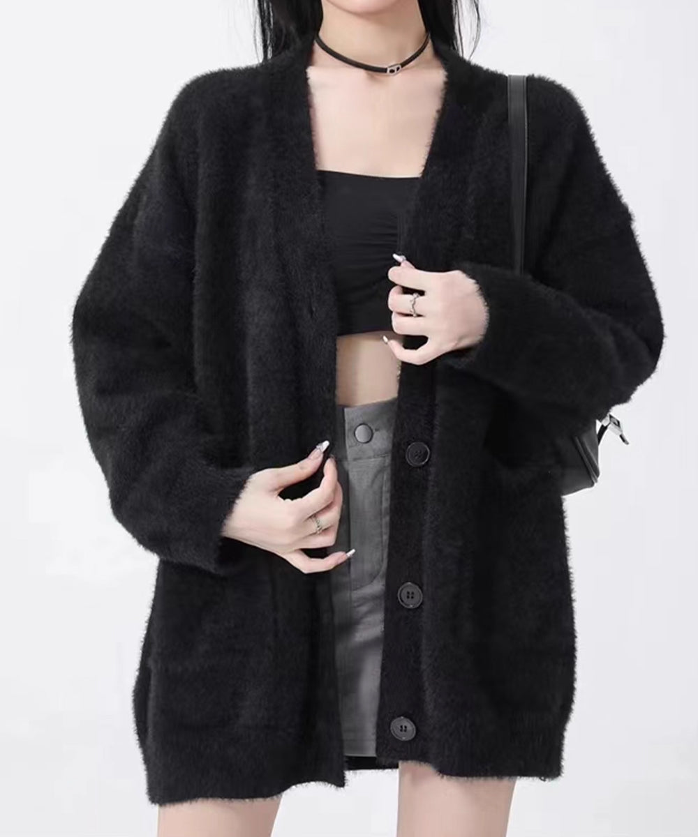 シャギーニットカーディガンVネック秋冬服